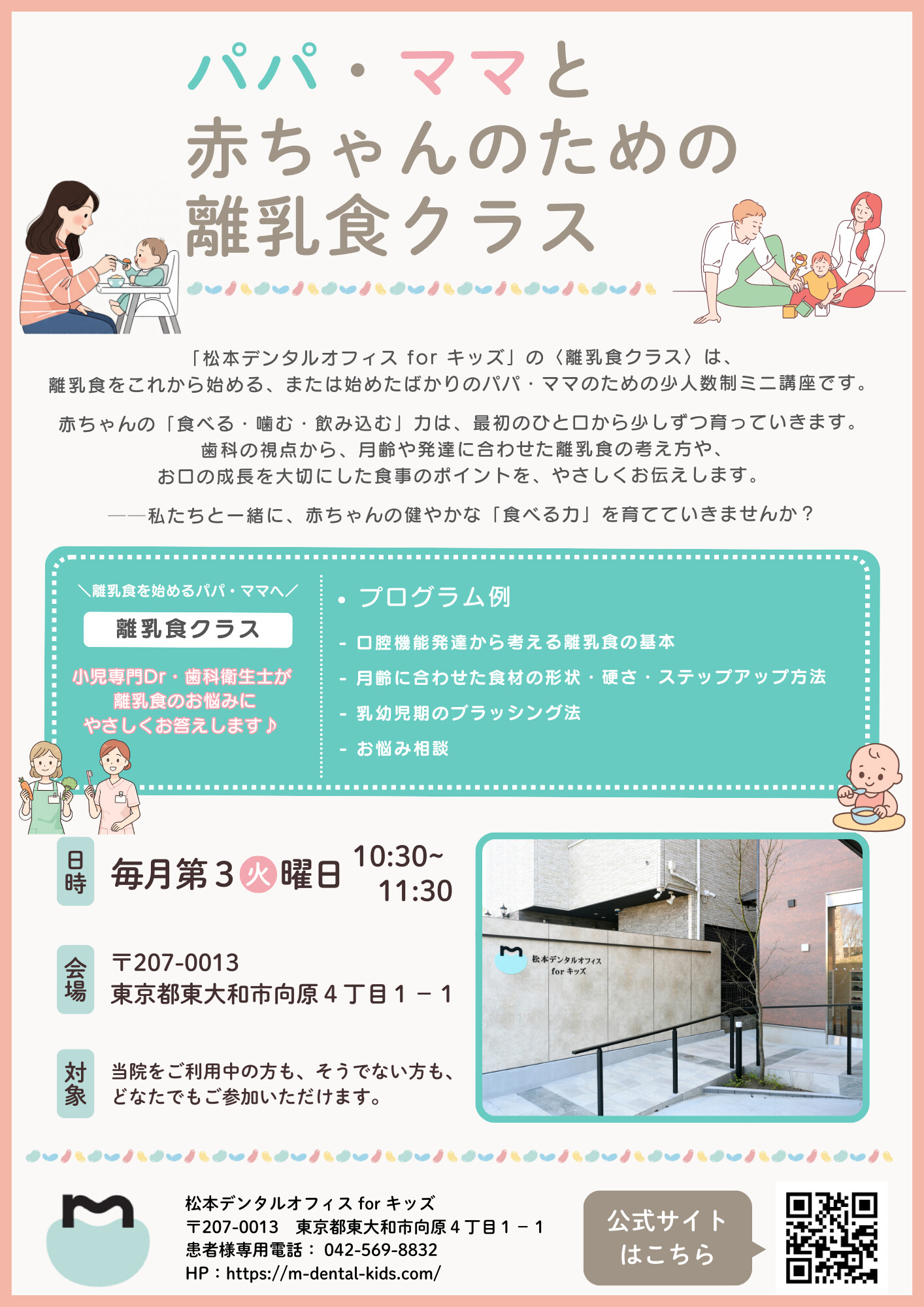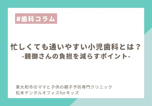 「子どもだけでなく、自分の歯も一緒に診てもらえたら安心。」そんな声に応えるのが、松本デンタルオフィスforキッズ東大和です。小児歯科はもちろん、むし歯・歯周病治療や予防など成人診療にも対応。親子で同じ場所に通える安心感と、質の高い治療をご提供します。