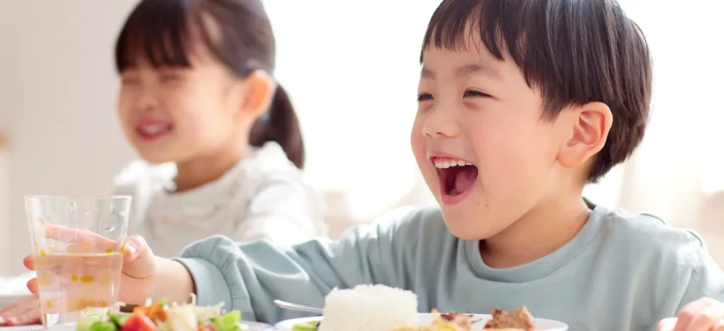 日常の食事や会話は、発音や口の使い方を育てる大切な機会です。